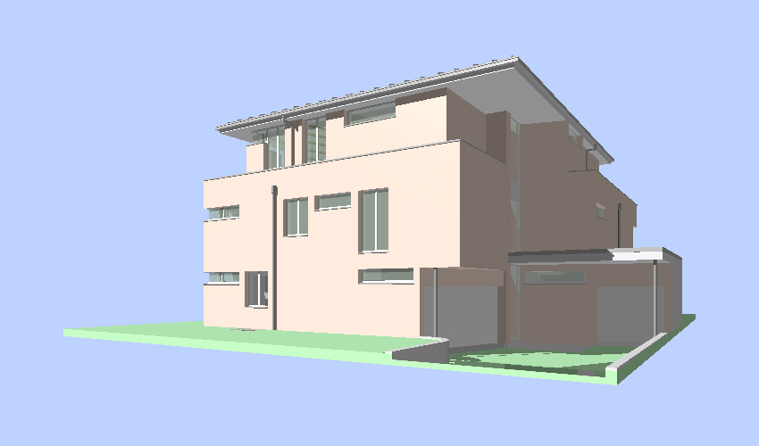 Perspektive von Nordosten / Zugangsbereich mit Doppelparkgaragen und Ausfahrt zur Wöhlerstraße